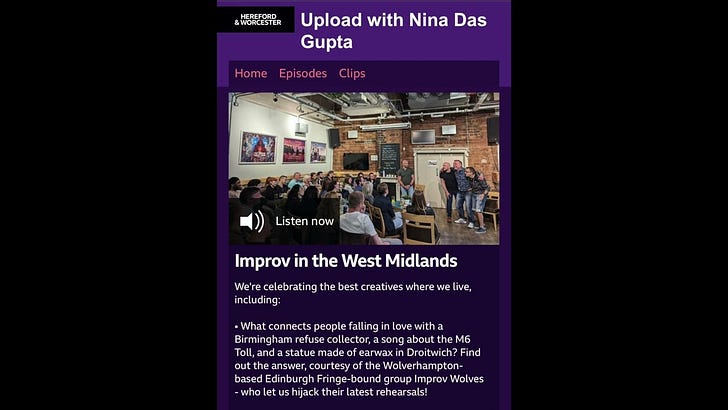 Last night Laurence and Robert spoke to Nina Das Gupta on BBC Upload about upcoming Improv Wolves shows in Smethwick and at the Edinburgh Fringe…